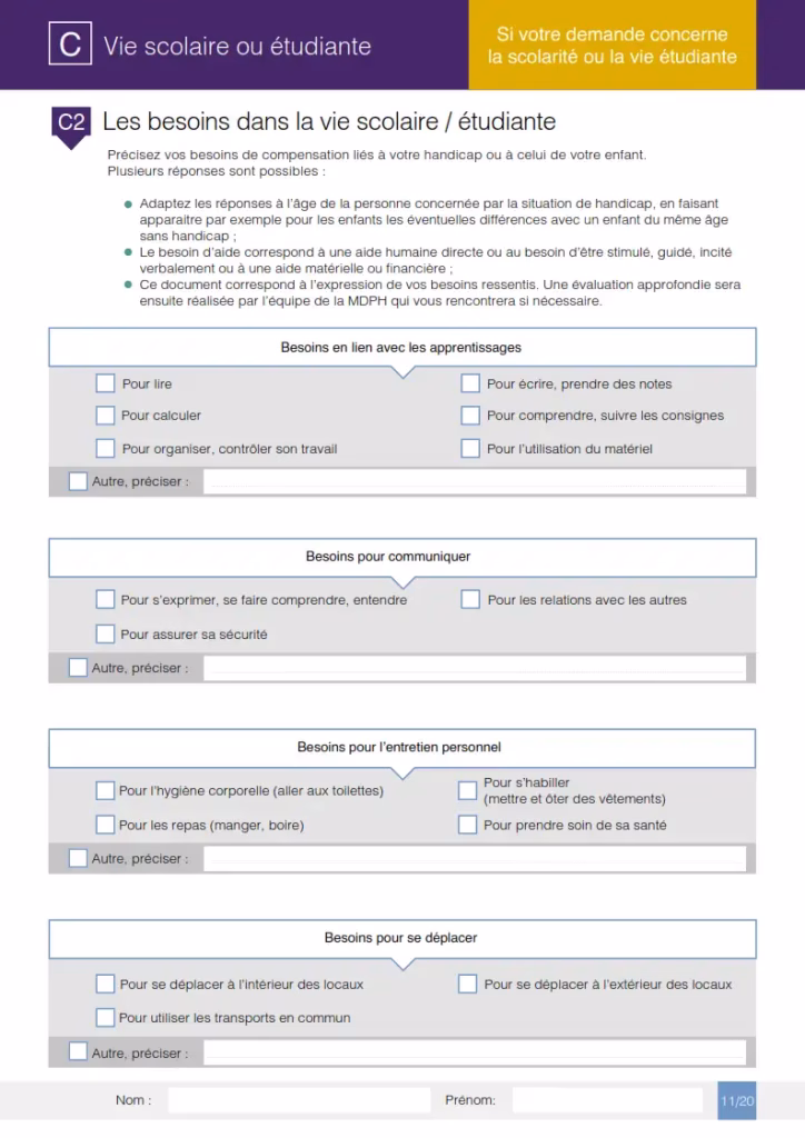 - Ce document correspond à l’expression de vos besoins ressentis. Une évaluation approfondie sera ensuite réalisée par l’équipe de la MDPH qui vous rencontrera si nécessaire.
