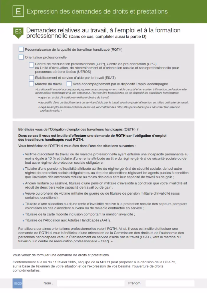 ინსტრუქცია: ამ კითხვაზე პასუხის შემთხვევაში, არ არის საჭირო RQTH მოთხოვნა, რადგან OETH უკვე მოიცავს მას.